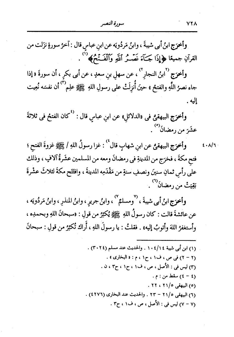 وأخرج ابن جرير عن عائشة قالت : ما سمعت رسول الله صلى الله عليه وسلم منذ أنزلت عليه هذه السورة {إذا جاء نصر الله والفتح} إلا يقول مثلهما : سبحانك اللهم ربنا وبحمدك اللهم اغفر لي.