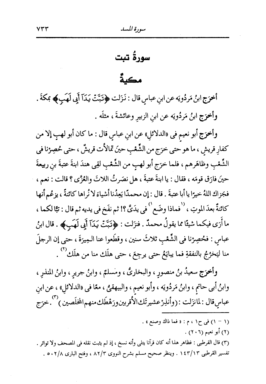 النبي صلى الله عليه وسلم حتى صعد الصفا فهتف : يا صباحاه فاجتمعوا إليه فقال : أرأيتكم لو أخبرتكم أن خيلا تخرج بسفح هذا الجبل أكنتم مصدقي قالوا : ما جربنا عليك كذبا ، قال : فإني نذير لكم بين يدي عذاب شديد ، فقال أبو لهب : تبا لك إنما جمعتنا لهذا ثم قام فنزلت هذه السورة {تبت يدا أبي لهب وتب}.