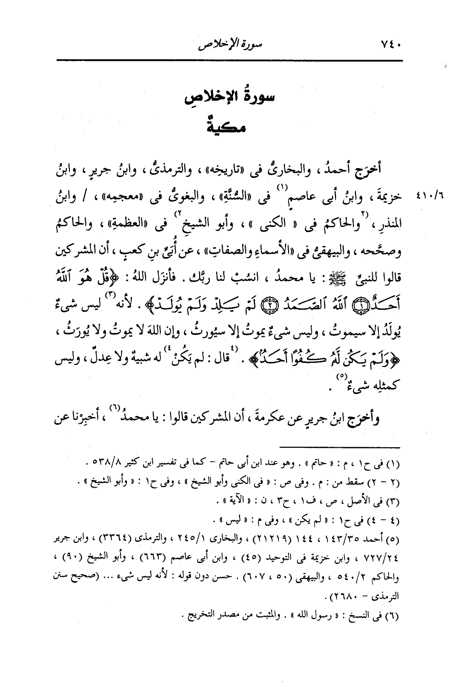 وأخرج أبو يعلى ، وَابن جَرِير ، وَابن المنذر والطبراني في الأوسط وأبو نعيم في الحلية والبيهقي بسند حسن ، عَن جَابر رضي الله عنه قال : جاء أعرابي إلى النَّبِيّ صلى الله عليه وسلم فقال : أنسب لنا ربك فأنزل الله {قل هو الله أحد الله الصمد لم يلد ولم يولد ولم يكن له كفوا أحد}.