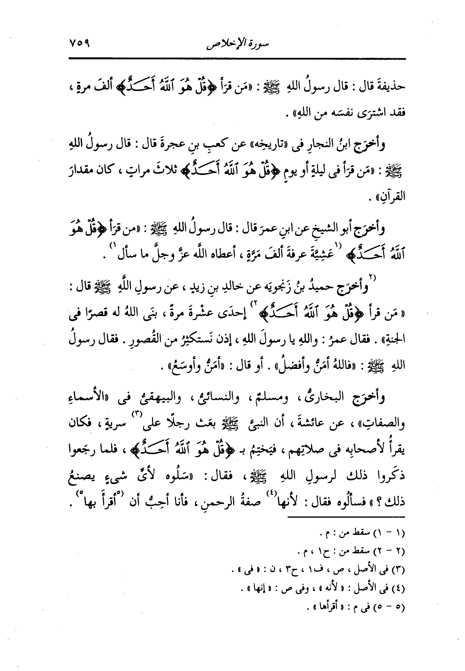 وأخرج ابن الضريس عن أنس قال : قال رجل لرسول الله صلى الله عليه وسلم : إن لي أخا قد حبب إليه قراءة {قل هو الله أحد} فقال : بشر أخاك بالجنة.