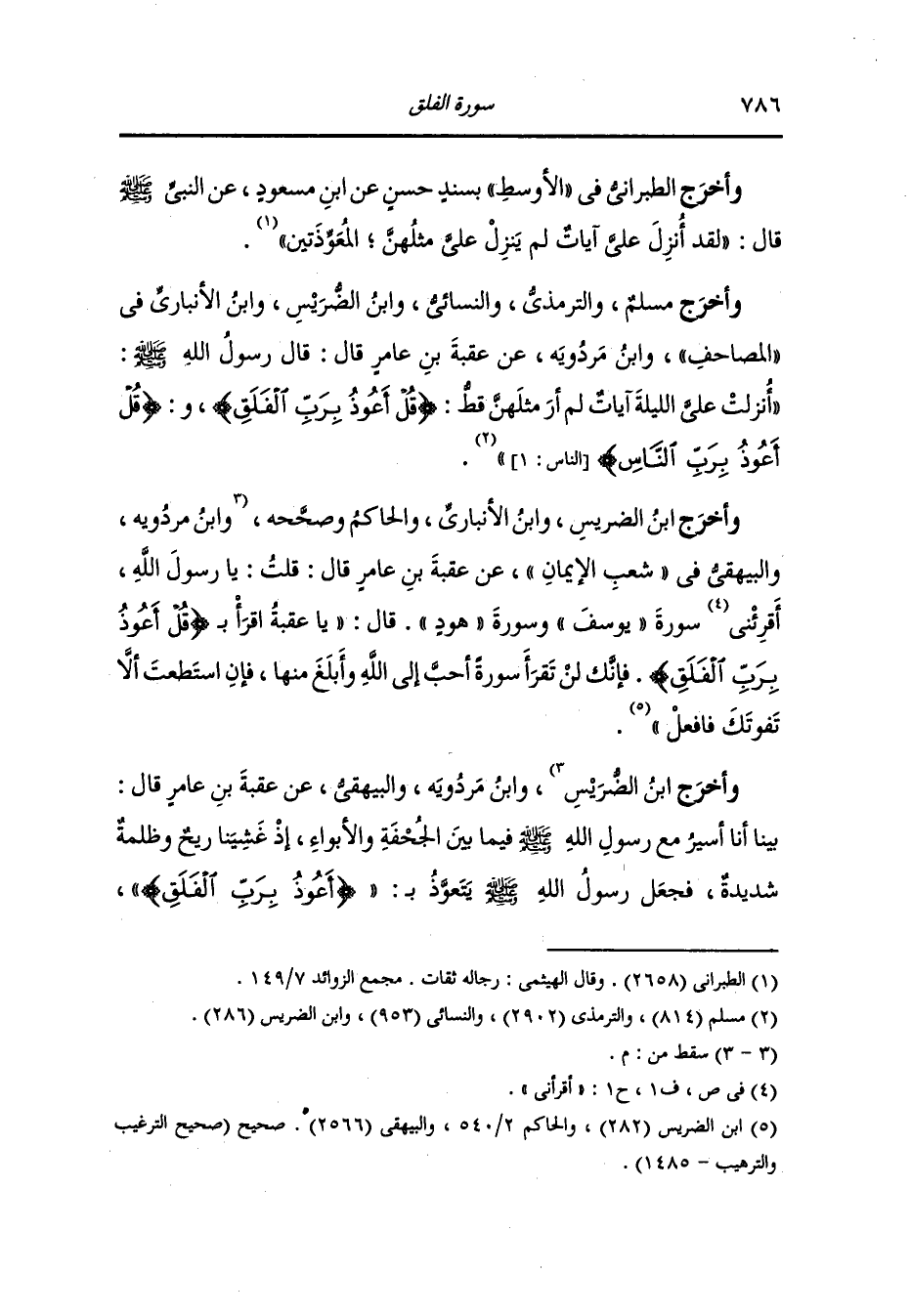 و (أعوذ برب الناس) ويقول : يا عقبة تعوذ بهما فما تعوذ متعوذ بمثلهما قال : وسمعته يؤمنا بهما في الصلاة.