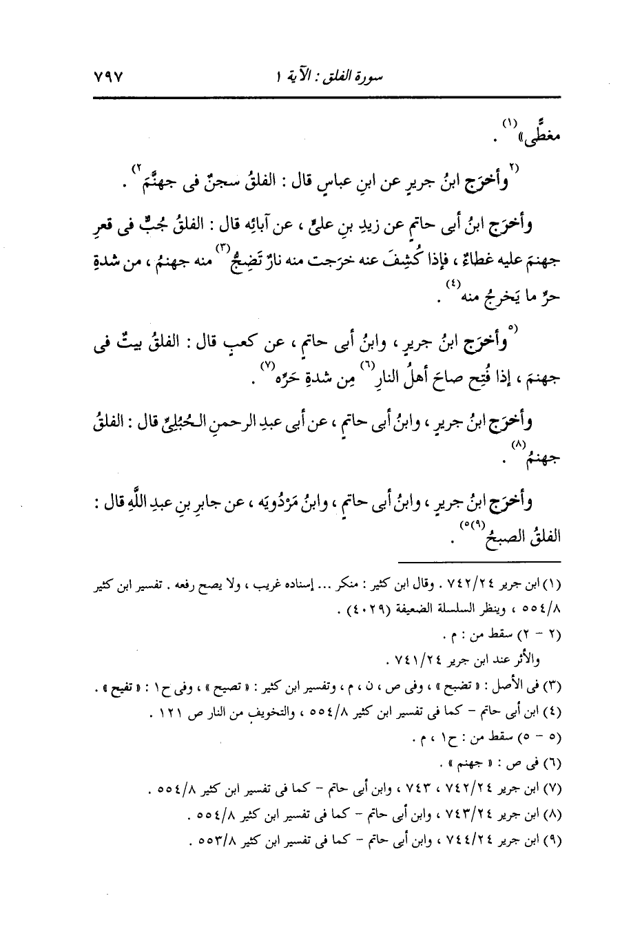 وَأخرَج ابن جرير ، وَابن المنذر ، وَابن أبي حاتم عن ابن عباس رضي الله عنهما قال : الفلق الخلق.