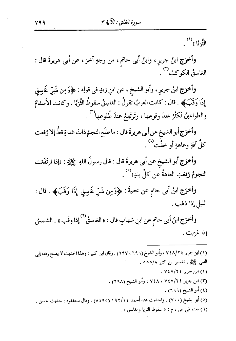 وَأخرَج ابن جرير ، وَابن المنذر عن مجاهد رضي الله عنه {غاسق إذا وقب} قال : الليل إذا دخل.