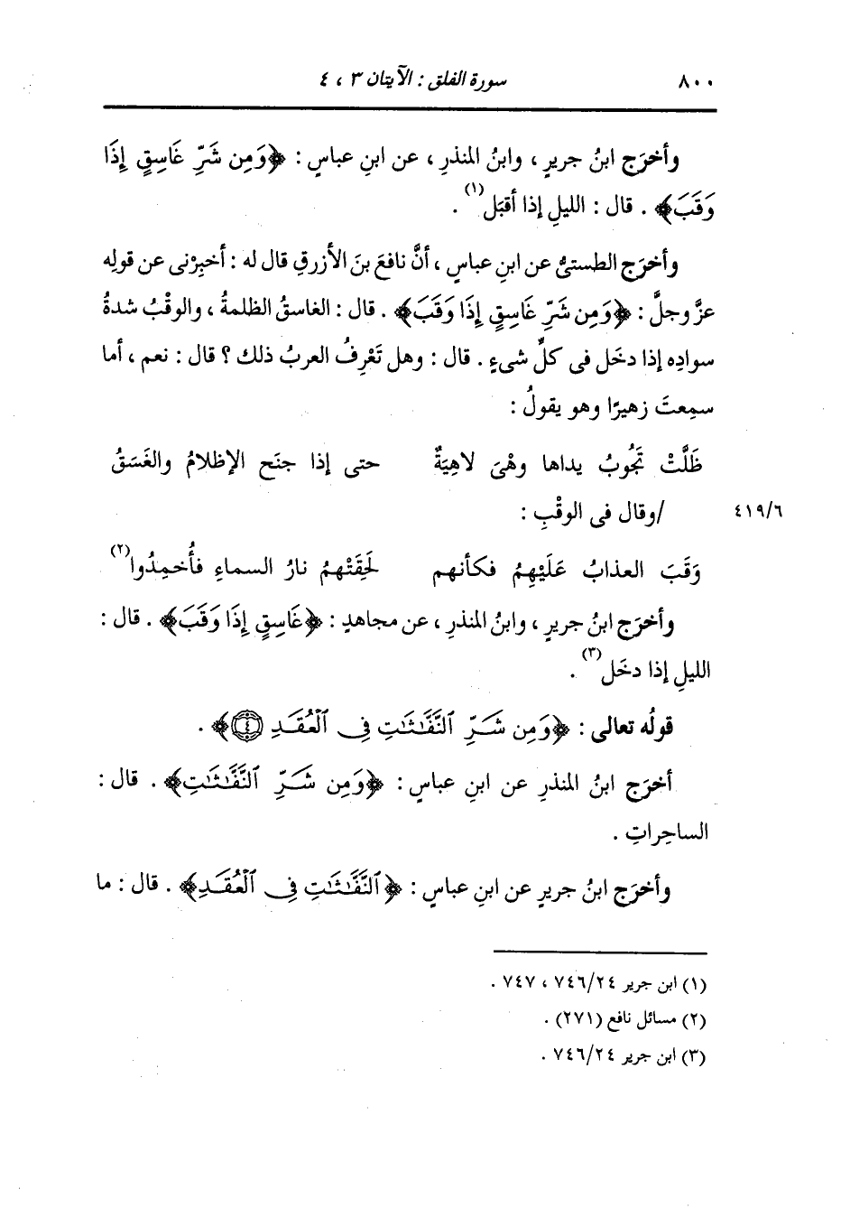 وأخرج ابن أبي حاتم عن الضحاك رضي الله عنه {النفاثات} قال : السواحر.