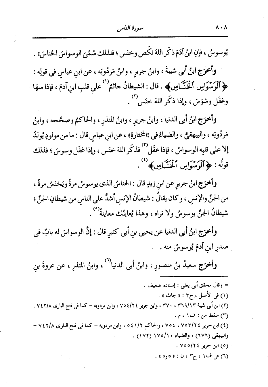 وأخرج ابن المنذر عن ابن جريج في قوله : {من الجنة والناس} قال : هما وسواسان فوسواس من الجنة وهو الجن ووسواس نفس الإنسان فهو قوله : {والناس}.