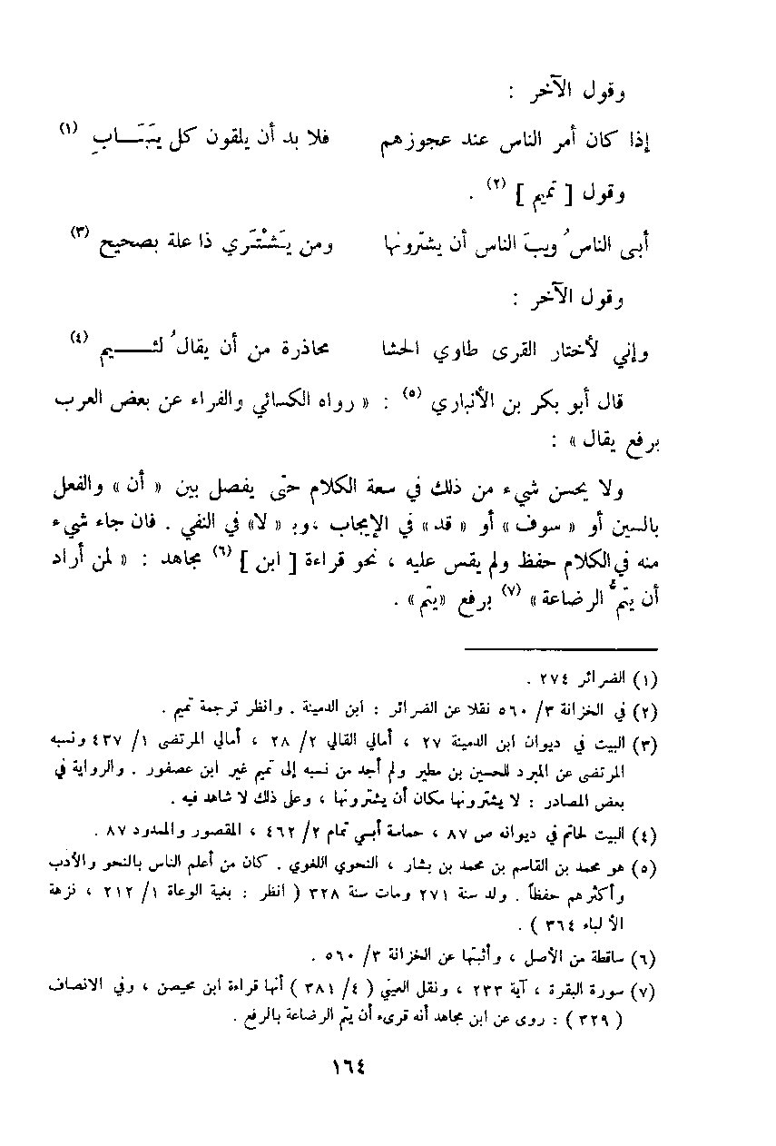 ولا يحسن شيء من ذلك في سعة الكلام حتى يفصل بين (أن) والفعل بالسين أو (سوف) أو (قد) في الإيجاب، وبـ (لا) في النفي. فإن جاء شيء منه في الكلام حفظ ولم يقس عليه، نحو قراءة (ابن) مجاهد: (لمن أراد أن يتم الرضاعة) برفع (يتم).
