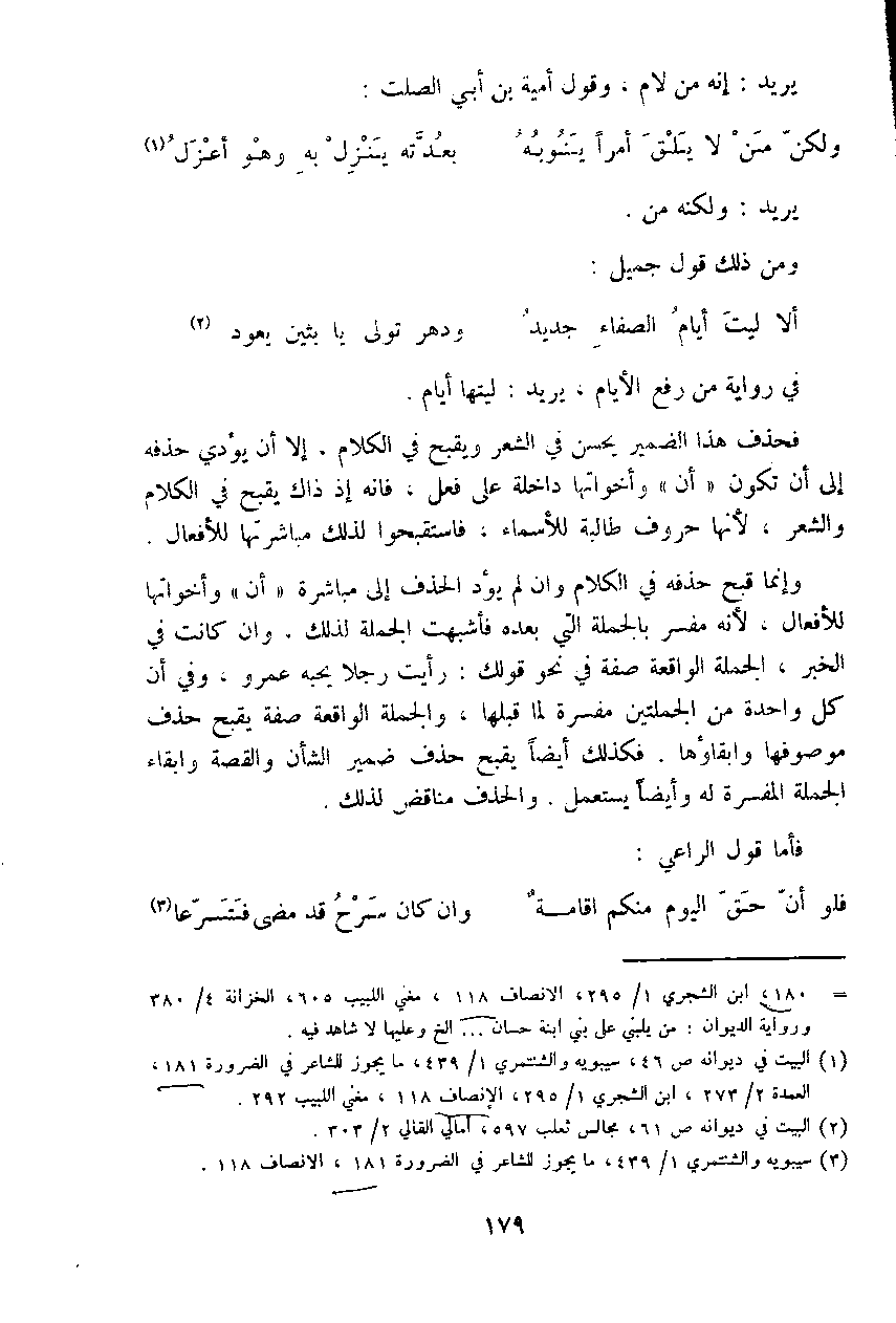 فحذف هذا الضمير يحسن في الشعر ويقبح في الكلام، إلا أن يؤدي حذفه إلى أن تكون (أن) وأخواتها داخلة على فعل، فإنه إذ ذاك يقبح في الكلام والشعر، لأنها حروف طالبة للأسماء، فاستقبحوا لذلك مباشرتها للأفعال.