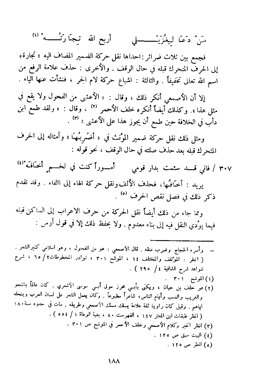 فجمع بين ثلاث ضرائر: إحداها نقل حركة الضمير المضاف إليه (تجارة) إلى الحرف المتحرك قبله في حال الوقف. والأخرى: حذف علامة الرفع من اسم الله تعالى تخفيفاً. والثالثة: إشباع حركة لام الجر، فنشأت عنها الياء.