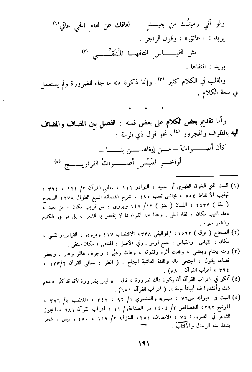 وأما تقديم بعض الكلام على بعض فمنه: الفصل بين المضاف والمضاف إليه بالظرف والمجرور، نحو قول ذي الرمة: