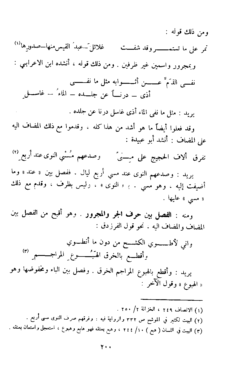 وقد فعلوا أيضاً ما هو أشد من هذا كله، وقدموا مع ذلك المضاف إليه على المضاف: أنشد أبو عبيدة: