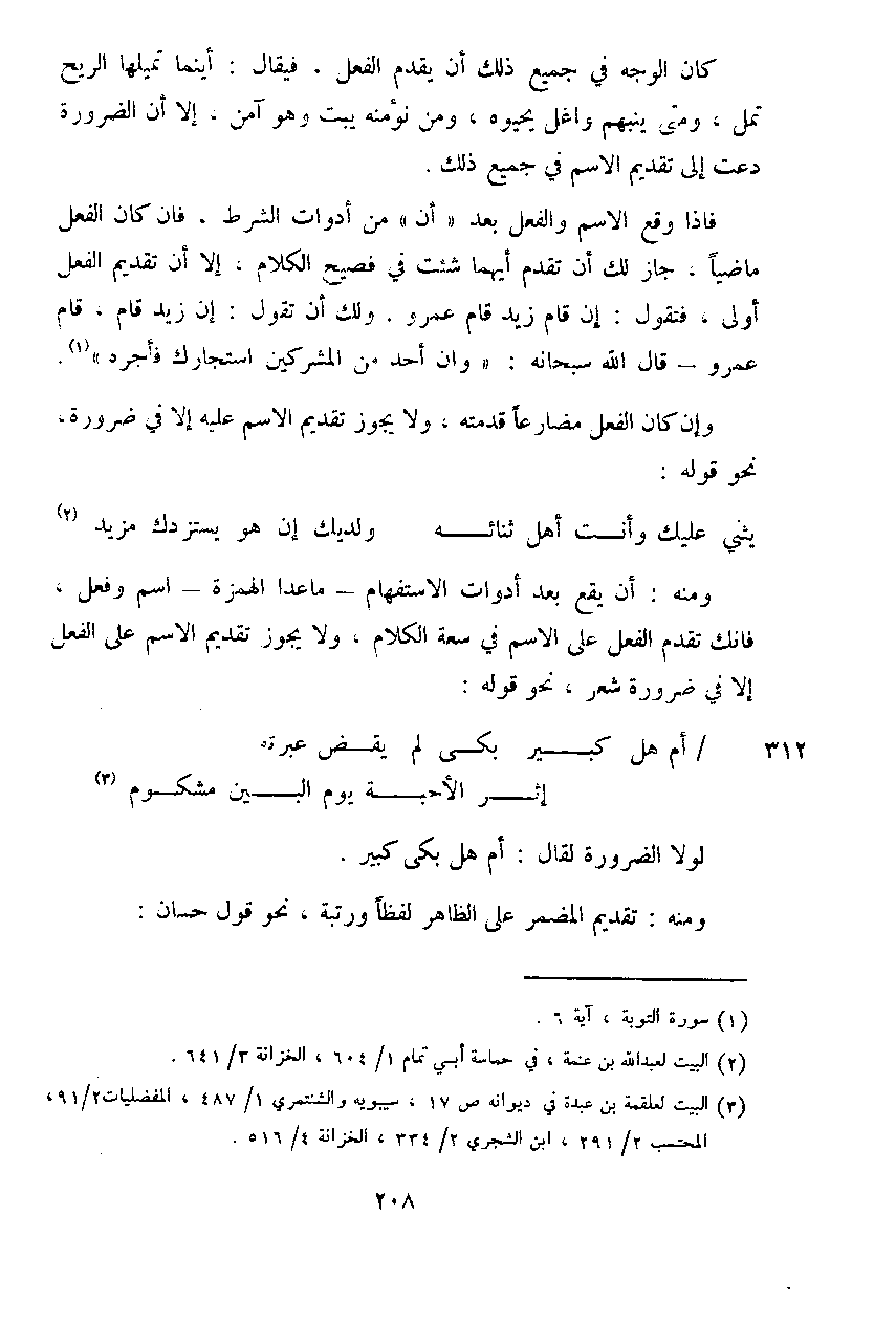 ومنه: أن يقع بعد أدوات الاستفهام - ما عدا الهمزة - اسم وفعل، فإنك تقدم الفعل على الاسم في سعة الكلام، ولا يجوز تقديم الاسم على الفعل إلا في ضرورة شعر، نحو قوله:
