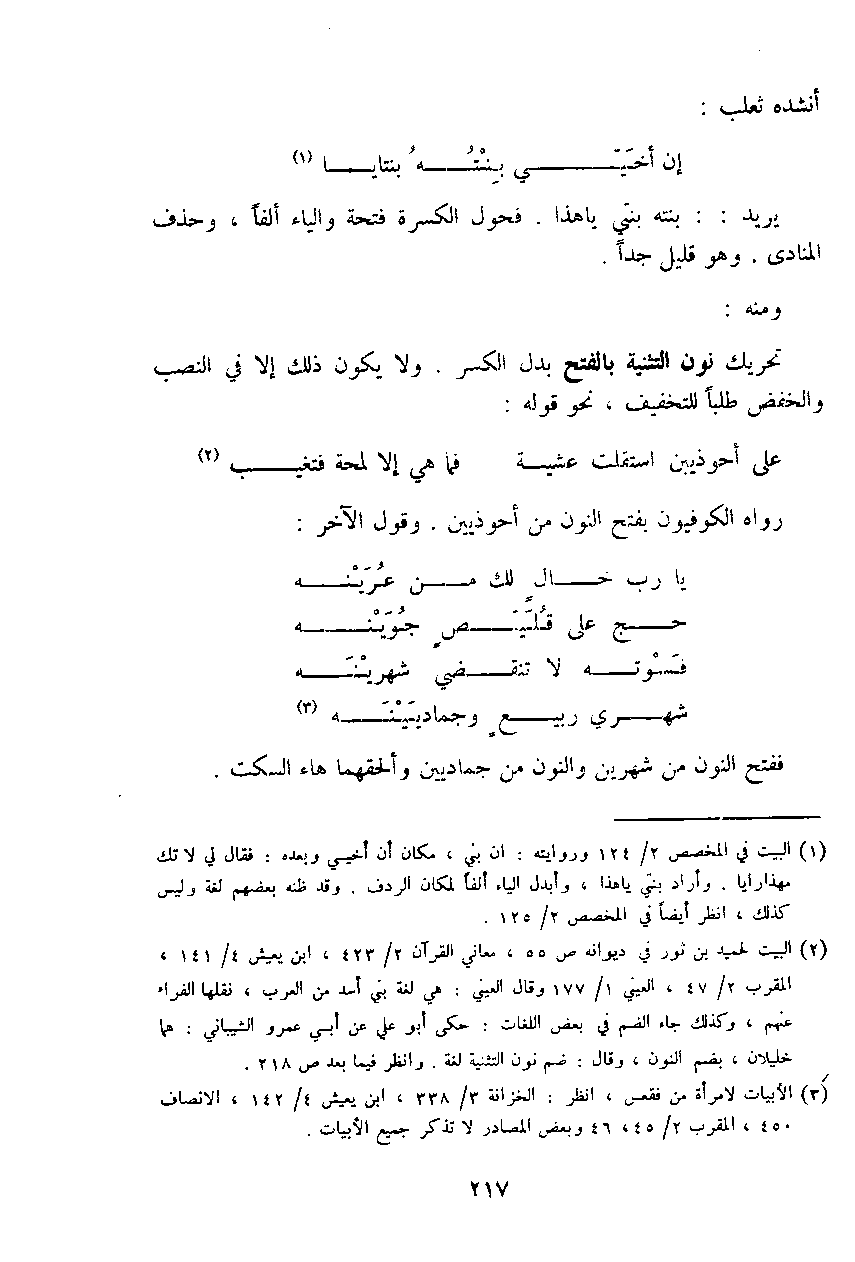 رواه الكوفيون بفتح النون من أحوذيين. وقول الآخر: