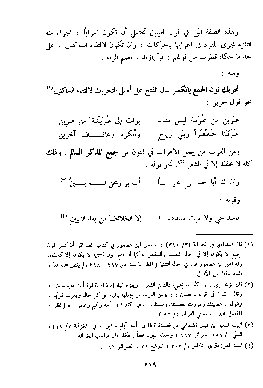 ومن العرب من يجعل الأعراب في النون من جمع المذكر السالم. وذلك كله لا يحفظ إلا في الشعر نحو قوله: