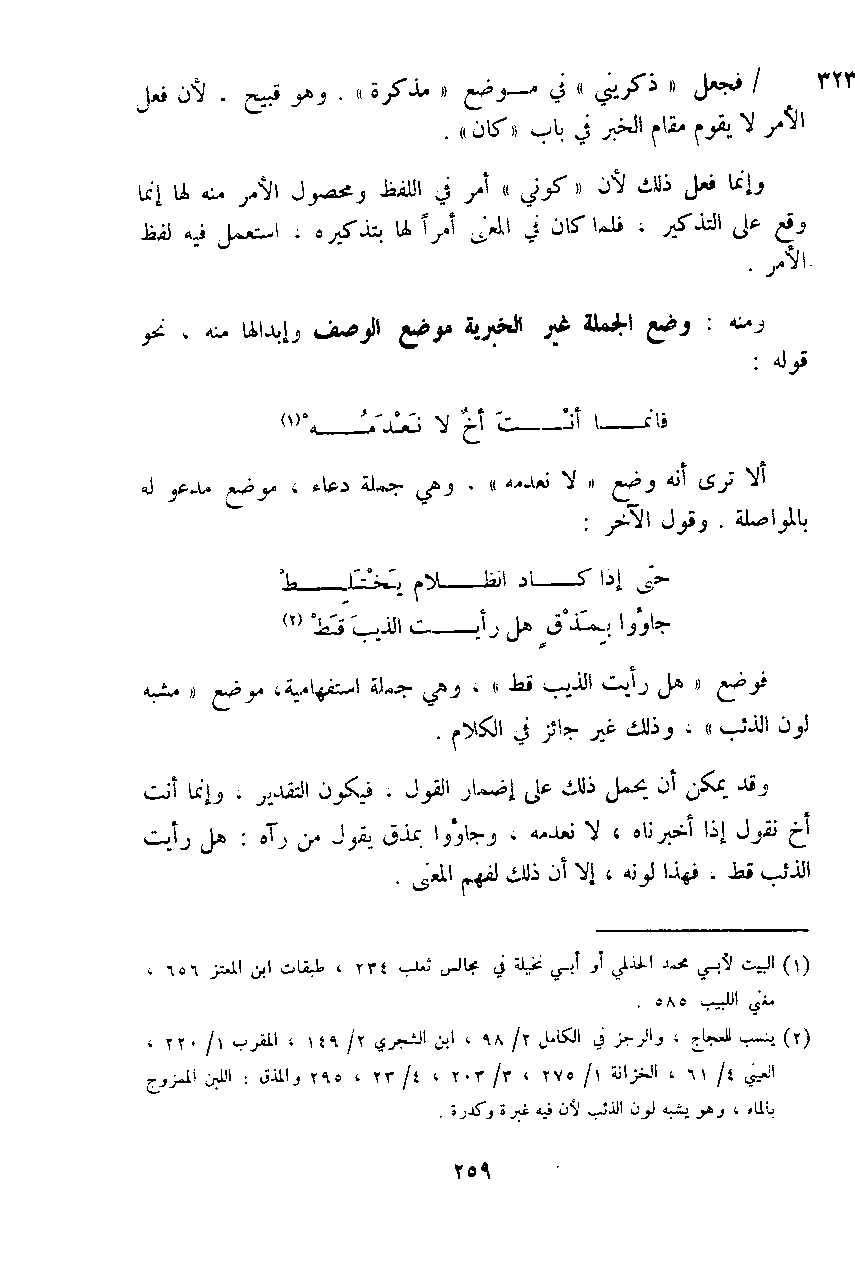 وقد يمكن أن يحمل ذلك على إضمار القول، فيكون التقدير، وإنما أنت أخ نقول إذا أخبرناه، لا نعدمه، وجاؤوا بمذق يقول منرآه: هل رأيت الذئب قط، فهذا لونه، إلا أن ذلك الفهم المعنى.