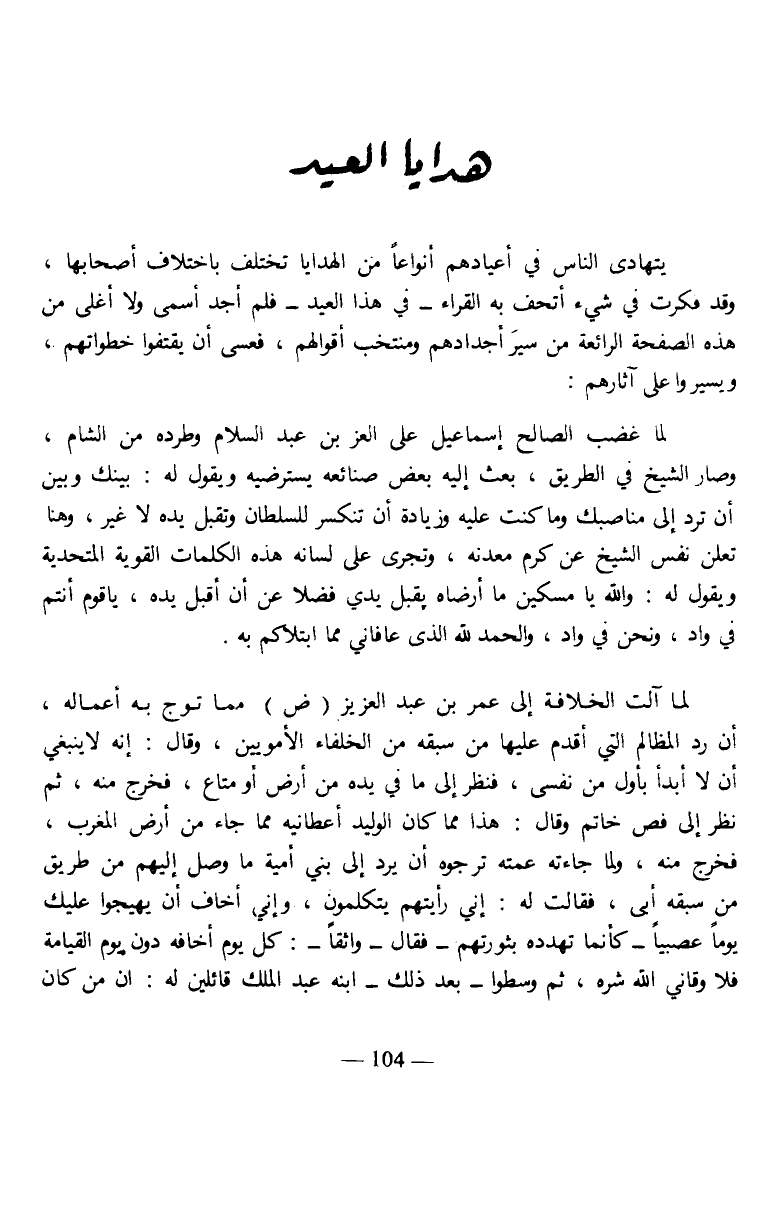 يتهادى الناس في أعيادهم أنواعا من الهدايا تختلف باختلاف أصحابها، وقد فكرت في شيء أتحف به القراء- في هذا العيد- فلم أجد أسمى ولا أغلى من هذه الصفحة الرائعة من سير أجدادهم ومنتخب أقوالهم، فعسى أن يقتفوا خطواتهم، ويسيروا على آثارهم: