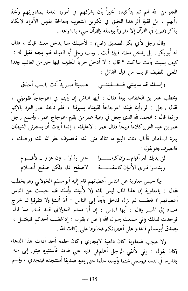 العفو من الله لهم ثم بتأكيده أخيرا بأن يشركهم في أموره العامة بمشاورتهم وأخذ رأيهم، بل لقوة أثر هذا الخلق في تكوين الشعوب ومعالجة نفوس الأفراد لا يكاد يذكر صلى الله عليه وسلم في القرآن إلا مقرونا بوصفه، والقرآن مليء بالشواهد.