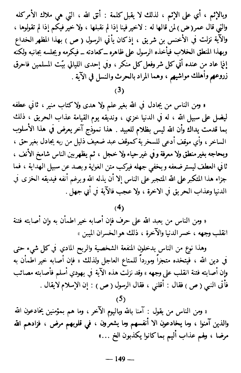 {وَمِنَ النَّاسِ مَنْ يَعْبُدُ اللَّهَ عَلَى حَرْفٍ فَإِنْ أَصَابَهُ خَيْرٌ اطْمَأَنَّ بِهِ وَإِنْ أَصَابَتْهُ فِتْنَةٌ انْقَلَبَ عَلَى وَجْهِهِ خَسِرَ الدُّنْيَا وَالْآخِرَةَ ذَلِكَ هُوَ الْخُسْرَانُ الْمُبِينُ}.