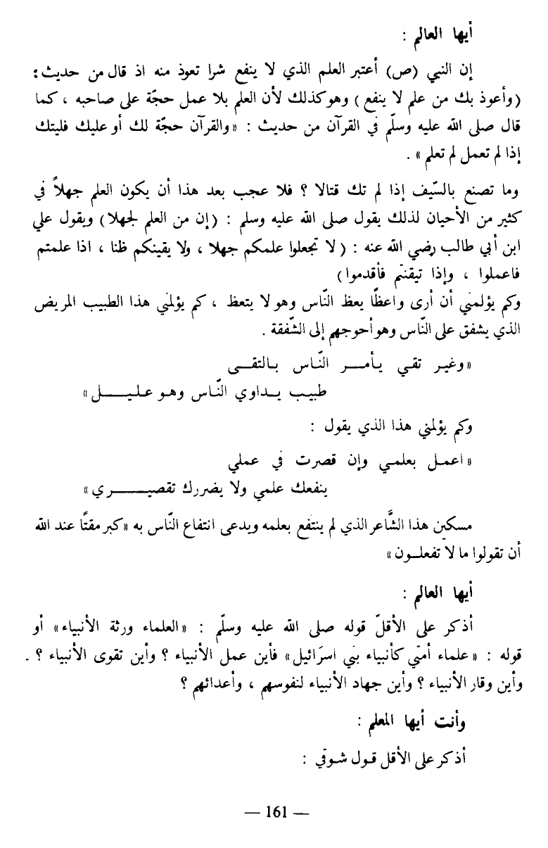 "اعمل بعلمي وإن قصرت في عملي … ينفعك علمي ولا يضررك تقصري"