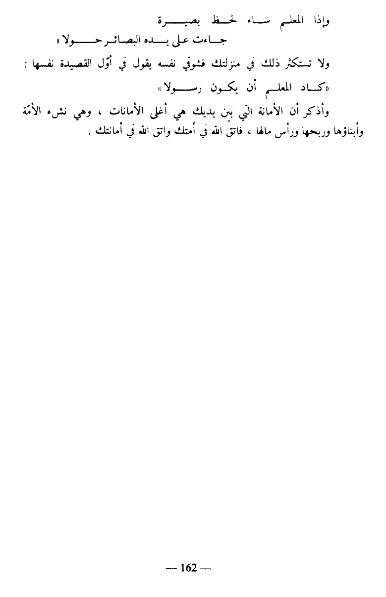 وإذا المعلم ساء لحظ بصيرة … جاءت على يده البصائر حولا"