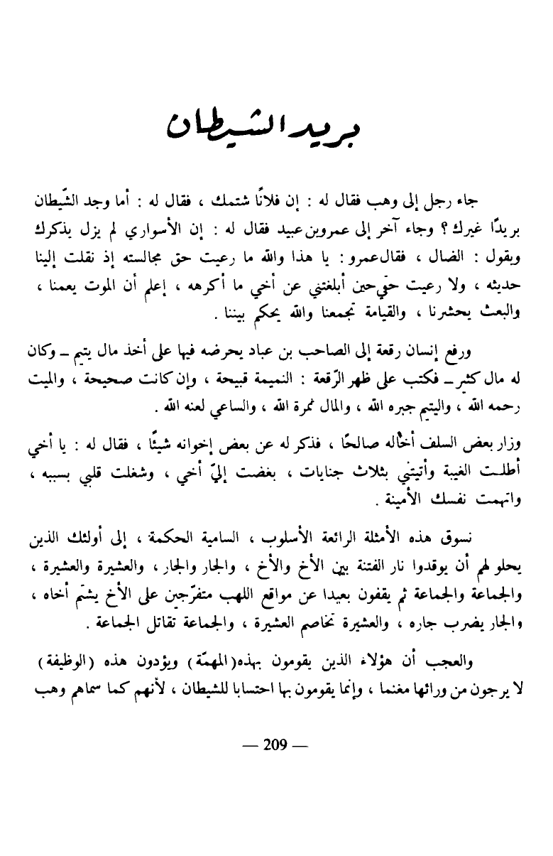 نسوق هذه الأمثلة الرائعة الأسلوب، السامية الحكمة، إلى أولئك الذين يحلو لهم أن يوقدوا نار الفتنة بين الأخ والأخ، والجار والجار، والعشيرة والعشيرة، والجماعة والجماعة ثم يقفون بعيدا عن مواقع اللهب متفرجين على الأخ يشتم أخاه، والجار يضرب جاره، والعشيرة تخاصم العشيرة، والجماعة تقاتل الجماعة.