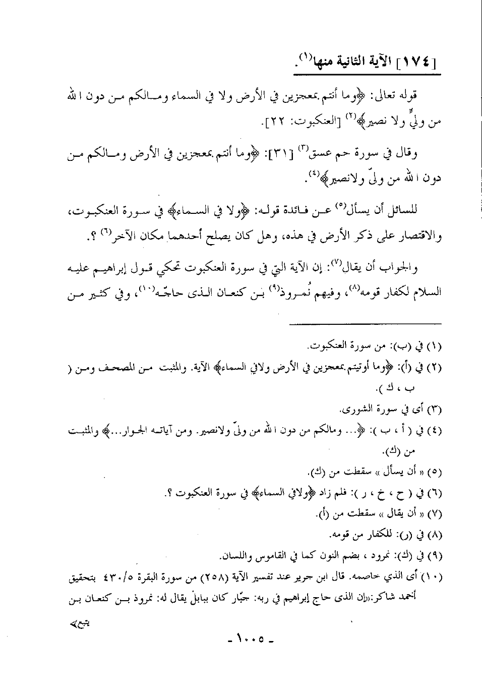 والجواب أن يقال: إن الآية التي في سورة العنكبوت تحكي قول إبراهيم عليه السلام لكفار قومه وفيهم نُمووذ بن كنعان الذى حاجه، وفي كثير عن