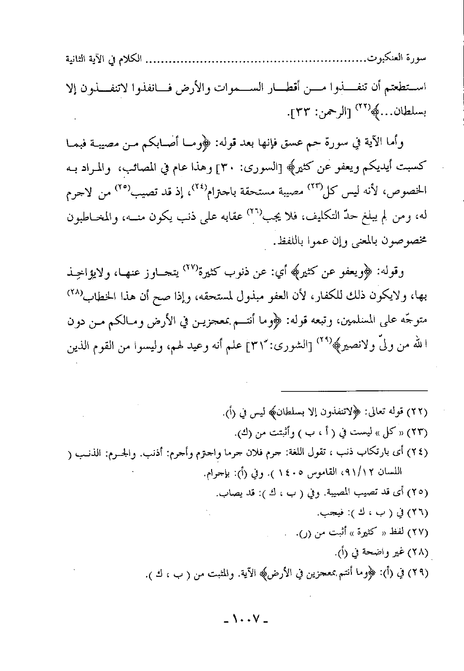 بها، ولا يكون ذلك للكفار، لأن العفو مبذول لمستحقه، وإذا صح أن هذا الخطاب متوجّه على المسلمين، وتبعه قوله: (وَمَا أَنْتُمْ بِمُعْجِزِينَ فِي الْأَرْضِ وَمَا لَكُمْ مِنْ دُونِ اللَّهِ مِنْ وَلِيٍّ وَلَا نَصِيرٍ (31)