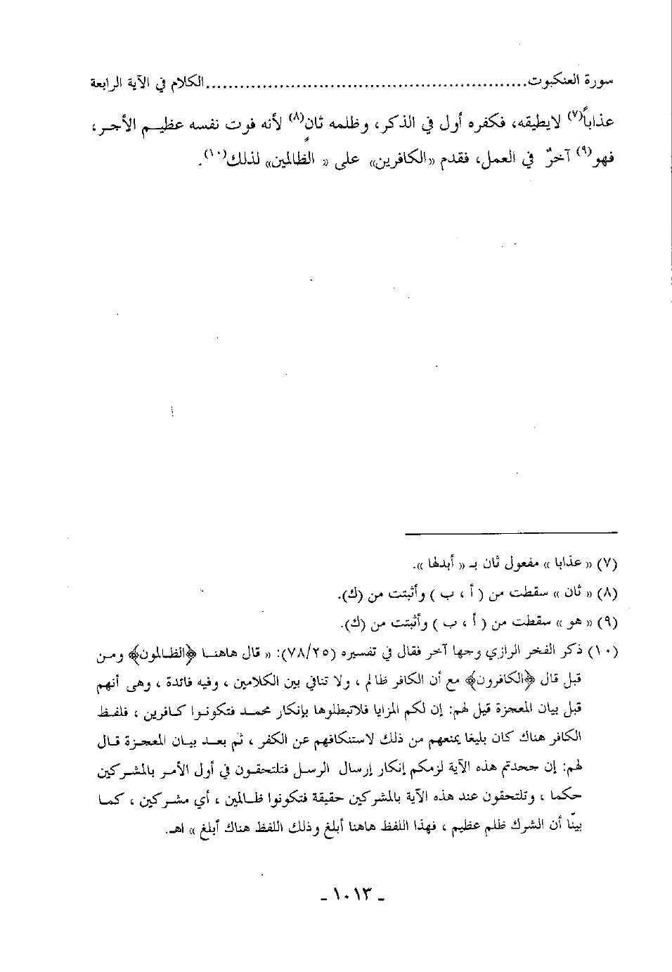 عذاباً لا يطيقه، فكفره أول في الذكر، وظلمه ثان لأنه فوت نفسه عظم الأجر، فهو آخر فِى العمل، فقدم (الكافرين) على (الظالمين) لذلك.