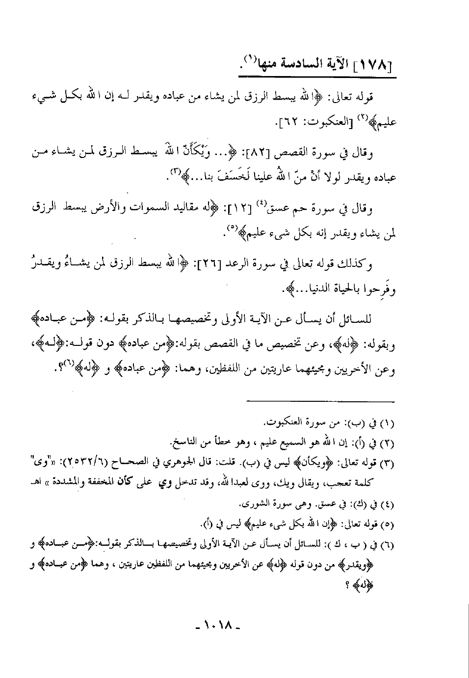 للسائل أن يسأل عن الآية الأولى وتخصيصها بالذكر بقوله: (من عباده) وبقوله: (له) وعن تخصيص ما في القصص بقوله: (من عباده) دون قوله: (له) ، وعن الأخريين ومجيئهما عاريتين من اللفظين، وهما (عن عباده) و (له) ؟.