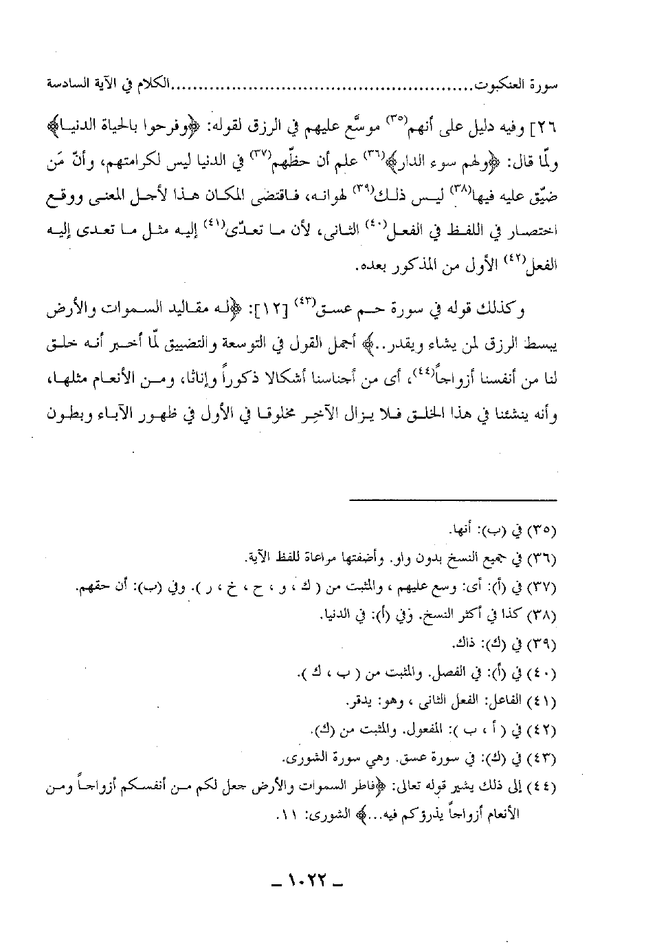 أجمل القول في التوسعة والتضييق لمّا أخبر أنه خلق لنا من أنفسنا أزواجا أى من أجناسنا أشكالا ذكورا وإناثا، ومن الأنعام مثلها، وأنه ينشئنا في هذا الخلق فلا يزال الآخِر مخلوقا فِى الأول في ظهور الآباء وبطون