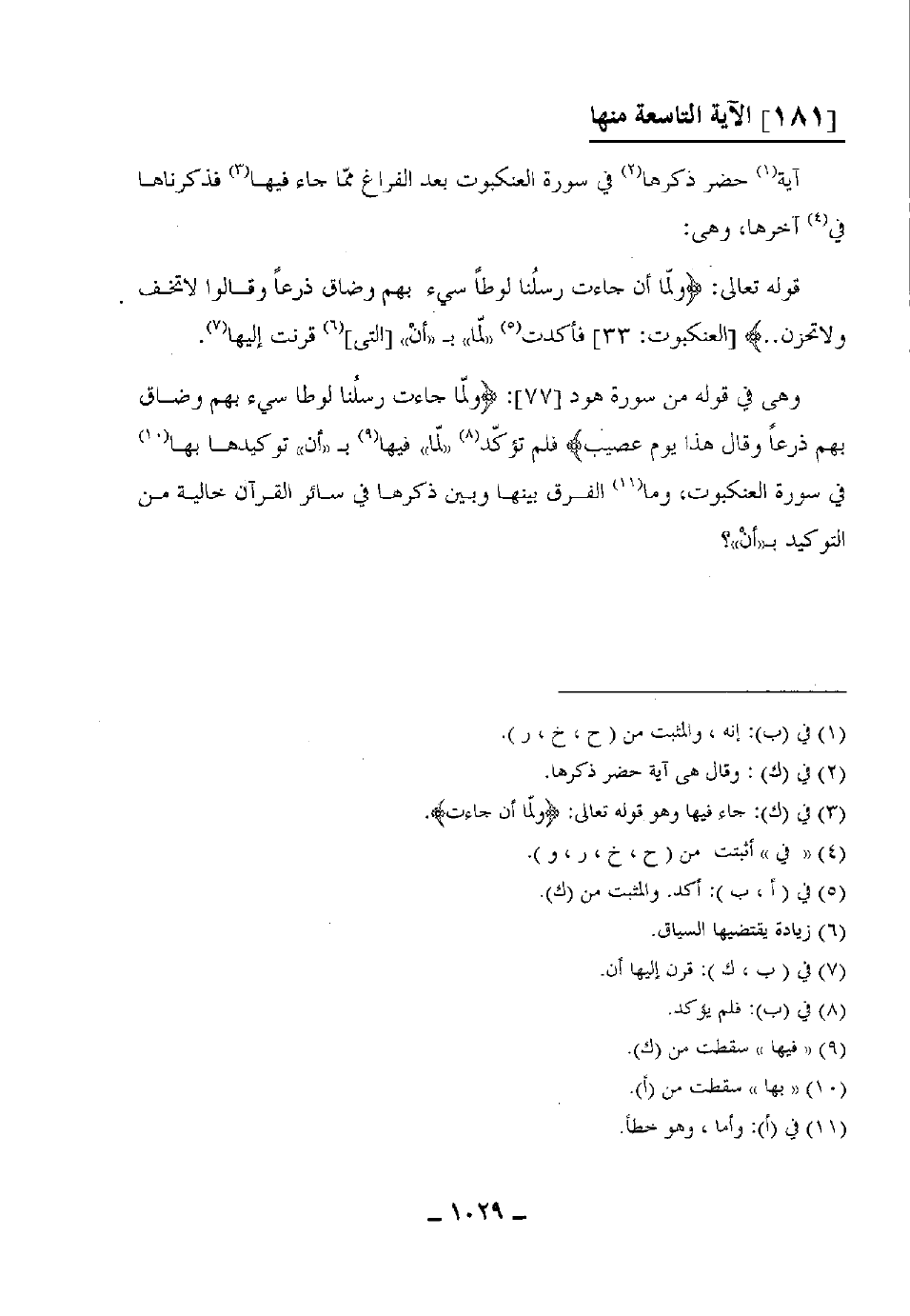 فلم تؤكّد "لمّا" فيها بـ "أنْ" توكيدها بها في سورة العنكبوت، وما الفرق بينها وبين ذكرها في سائر القرآن خالية من التوكيد بـ "أنْ"؟
