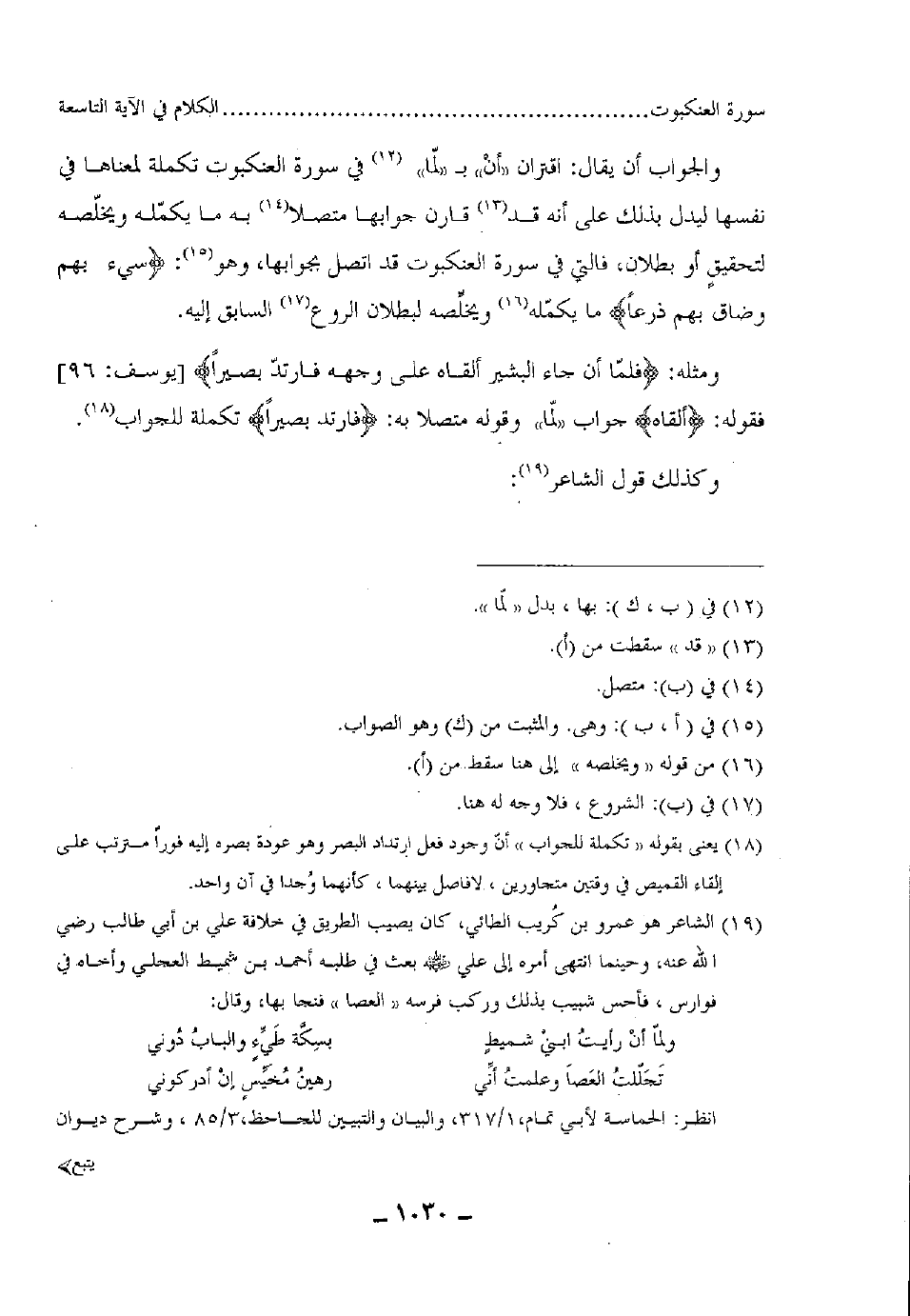 فقوله: (أَلْقَاهُ) جواب "لمّا" وقوله متصلا به: (فَارْتَدَّ بَصِيرًا) تكملة للجواب وكذلك قول الشاعر: