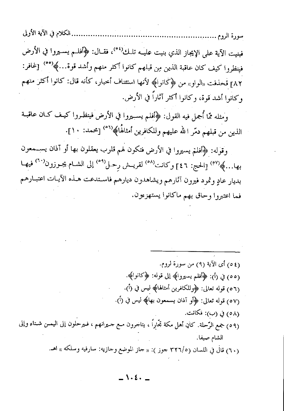 فبنيت الآية على الإيجاز الذي بنيت عليه تلك، فقال: (أَفَلَمْ يَسِيرُوا فِي الْأَرْضِ فَيَنْظُرُوا كَيْفَ كَانَ عَاقِبَةُ الَّذِينَ مِنْ قَبْلِهِمْ كَانُوا أَكْثَرَ مِنْهُمْ وَأَشَدَّ قُوَّةً ... ) ، فحدفت الواو من (كانو) لأنها استئناف أخبار، كأنه قال: كانوا أكثر منهم وكانوا أشد قوة، وكانوا أكثر آثارا في الأرض.