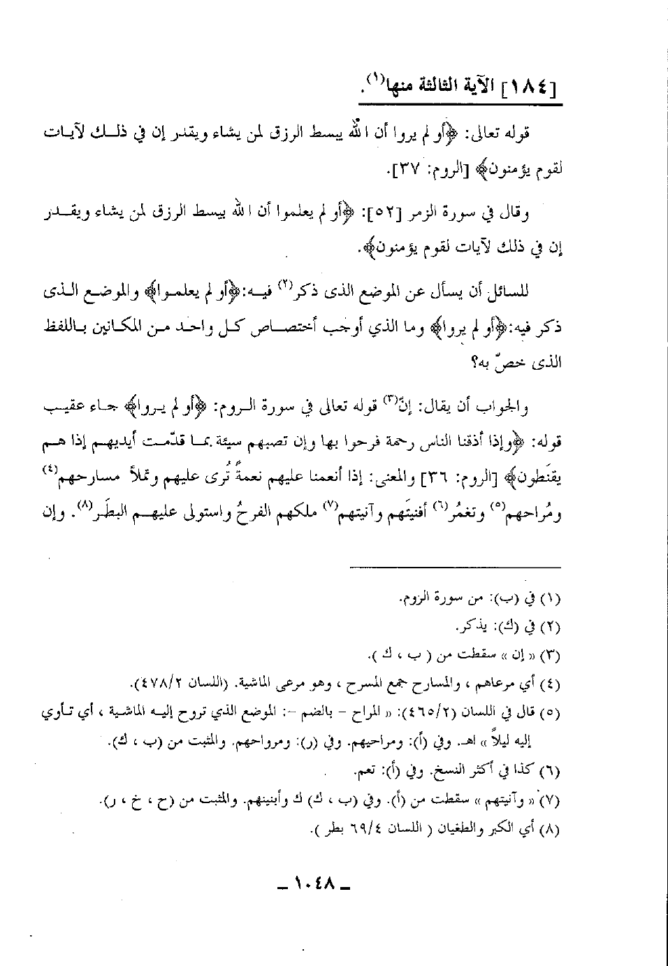 والجواب أن يقال: إنّ: قوله تعالى في سورة الروم: (أَوَلَمْ يَرَوْا) جاء عقيب قوله: (وَإِذَا أَذَقْنَا النَّاسَ رَحْمَةً فَرِحُوا بِهَا وَإِنْ تُصِبْهُمْ سَيِّئَةٌ بِمَا قَدَّمَتْ أَيْدِيهِمْ إِذَا هُمْ يَقْنَطُونَ (36)