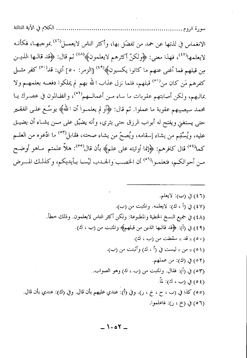 الانغماس في لذتها عن حمد من تفضّل بها وأكثر الناس لا يعمل بموجبها، فكأنه لا يعلمها، فهذا معنى: (ولكنّ أكثرهم لا يعلمون) ثم قال: (قد قالها الذين مِن قبلهم فما أغنى عنهم ما كانوا يكسبون) ، أي: قد كفر مثل كفرهم مَن كان من قبلهم، فلما نزل عذاب الله بهم لم يملكوا دفعه بعلمهم ولا بمالهم، ولكن أصابتهم عقوبات ما ساء من أعمالسهم، والظالون في عصرك يا محمد سيصيبهم عقوبة ما عملوا، ثم فال: (أولم يعلموا أن الله) يوسّع على الفقير حتى يستغني ويفتح له أبواب الرزق حتى يثري، وأنه يضيّق على من يشاء أن يضيق عليه، ويُسْقِم من يشاء إسقامه، ويُصحّ من يشاء صحته، فقابل ما ادّعوه من العلم كما قال كافرهم: (إنما أوتيته على علم) بأن قال: هلاّ علمتم ما هو أوضح من أحوالكم، فتعلموا أن الخصب والجدب ليْسا بأيديكم، وكذلك المرض