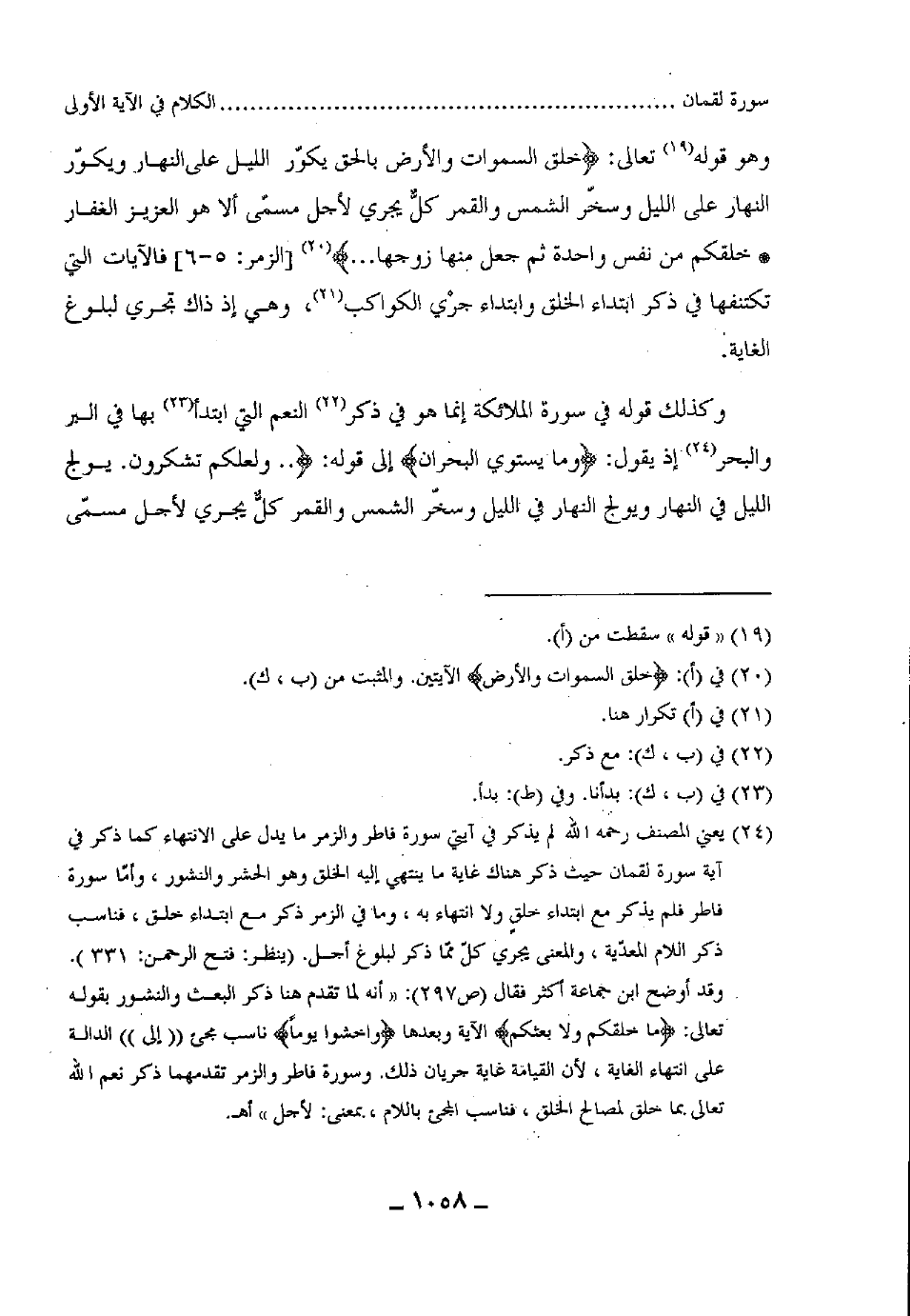 إلى قوله: (.. وَلَعَلَّكُمْ تَشْكُرُونَ (12) يُولِجُ اللَّيْلَ فِي النَّهَارِ وَيُولِجُ النَّهَارَ فِي اللَّيْلِ وَسَخَّرَ الشَّمْسَ وَالْقَمَرَ كُلٌّ يَجْرِي لِأَجَلٍ مُسَمًّى ذَلِكُمُ اللَّهُ رَبُّكُمْ لَهُ الْمُلْكُ وَالَّذِينَ تَدْعُونَ مِنْ دُونِهِ مَا يَمْلِكُونَ مِنْ قِطْمِيرٍ (13)
