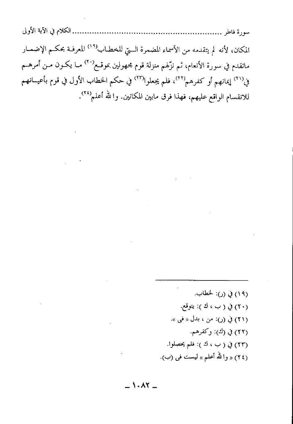 المكان، لأنه لم يتقدمه من الأسماء المضمرة التي للخطاب المعرفة بحكم الإضمار ما تقدم في سورة الأنعام، ثم نزلهم منزلة قوم مجهولين لا يتوقع ما يكون من أمرهم في إيمانهم أو كفرهم، فلم يجعلوا في حكم الخطاب الأول في قوم بأعيانهم للانقسام الواقع عليهم، فهذا فرق مابين المكانين. والله أعلم.