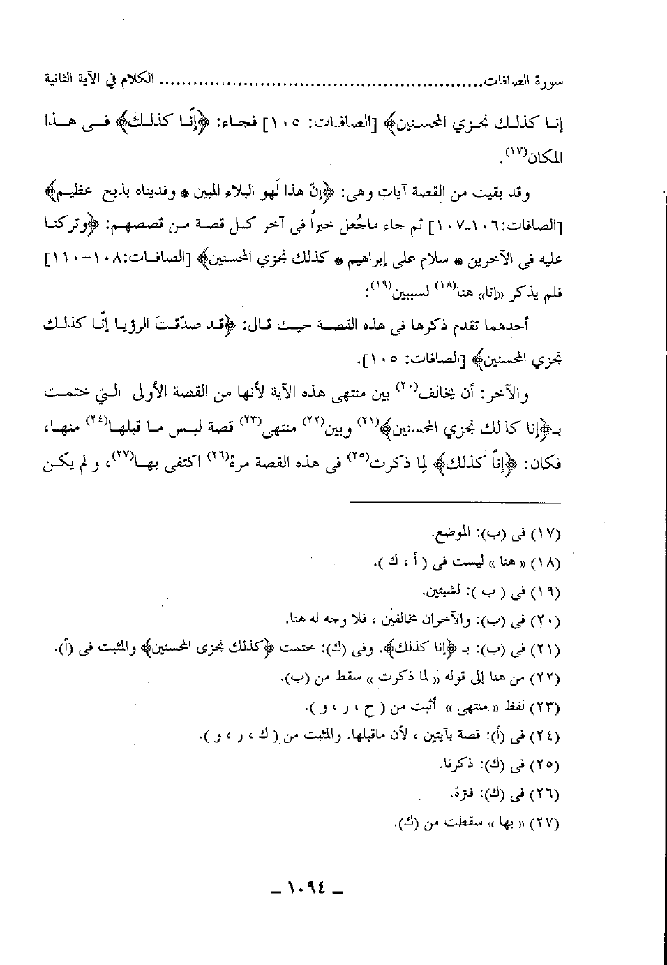 ب (إِنَّا كَذَلِكَ نَجْزِي الْمُحْسِنِينَ (105)