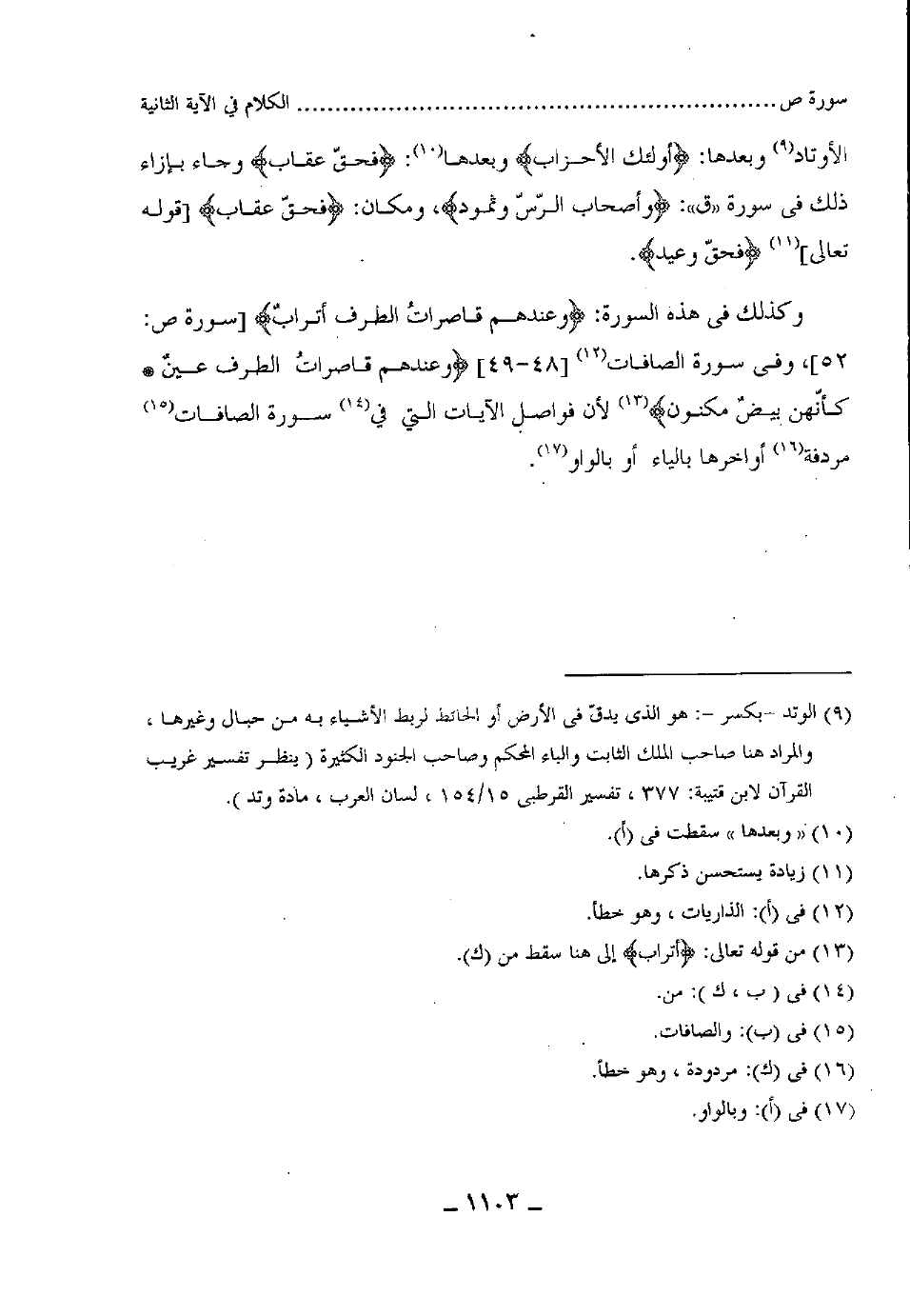 وبعدها: (أولئك الأحزاب) وبعدها: (فحقّ عقاب) وجاء بإزاء ذلك فى سورة "ق": (وأصحاب الرّسّ وثم ود، ومكان: (فحقّ عقاب) قوله تعالى، (فحقّ وعيد) .