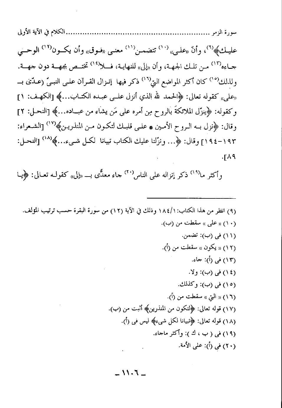 وأنّ على" تتضمن معنى "فوق" وأن يكون الوحي جاءه من تلك الجهة، وأن "إلى" للنهاية، فلا تختص بجهة دون جهة، ولذلك كان أكثر المواضع التي ذكر فيها إنزال القرآن على النبىّ - صلى الله عليه وسلم - (عدّي ب بـ "على" كقوله تعالى: (الْحَمْدُ لِلَّهِ الَّذِي أَنْزَلَ عَلَى عَبْدِهِ الْكِتَابَ) ، وكقوله: (يُنَزِّلُ الْمَلَائِكَةَ بِالرُّوحِ مِنْ أَمْرِهِ عَلَى مَنْ يَشَاءُ مِنْ عِبَادِهِ ... ) ، وقال: (نَزَلَ بِهِ الرُّوحُ الْأَمِينُ (193) عَلَى قَلْبِكَ لِتَكُونَ مِنَ الْمُنْذِرِينَ (194) ،