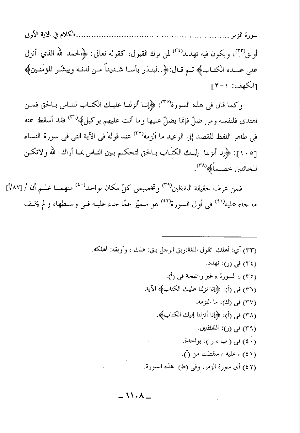 وكما قال فى هذه السورة: (إِنَّا أَنْزَلْنَا عَلَيْكَ الْكِتَابَ لِلنَّاسِ بِالْحَقِّ فَمَنِ اهْتَدَى فَلِنَفْسِهِ وَمَنْ ضَلَّ فَإِنَّمَا يَضِلُّ عَلَيْهَا وَمَا أَنْتَ عَلَيْهِمْ بِوَكِيلٍ (41)