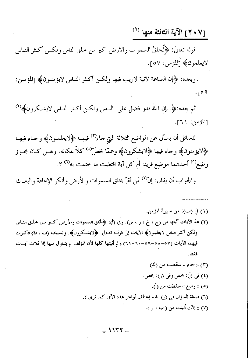للسائل أن يسأل عن المواضع الثلاتة التي جاء فيها لا يعلمون وجاء فيها (لا يؤمنون وجاء فيها لا يشكرون، وعمّا يخصّ كلاّ بمكانه، وهل كان يجوز وضع أحدهما موضع قرينه أم كل آية اقتضت ما ختمت به؟.