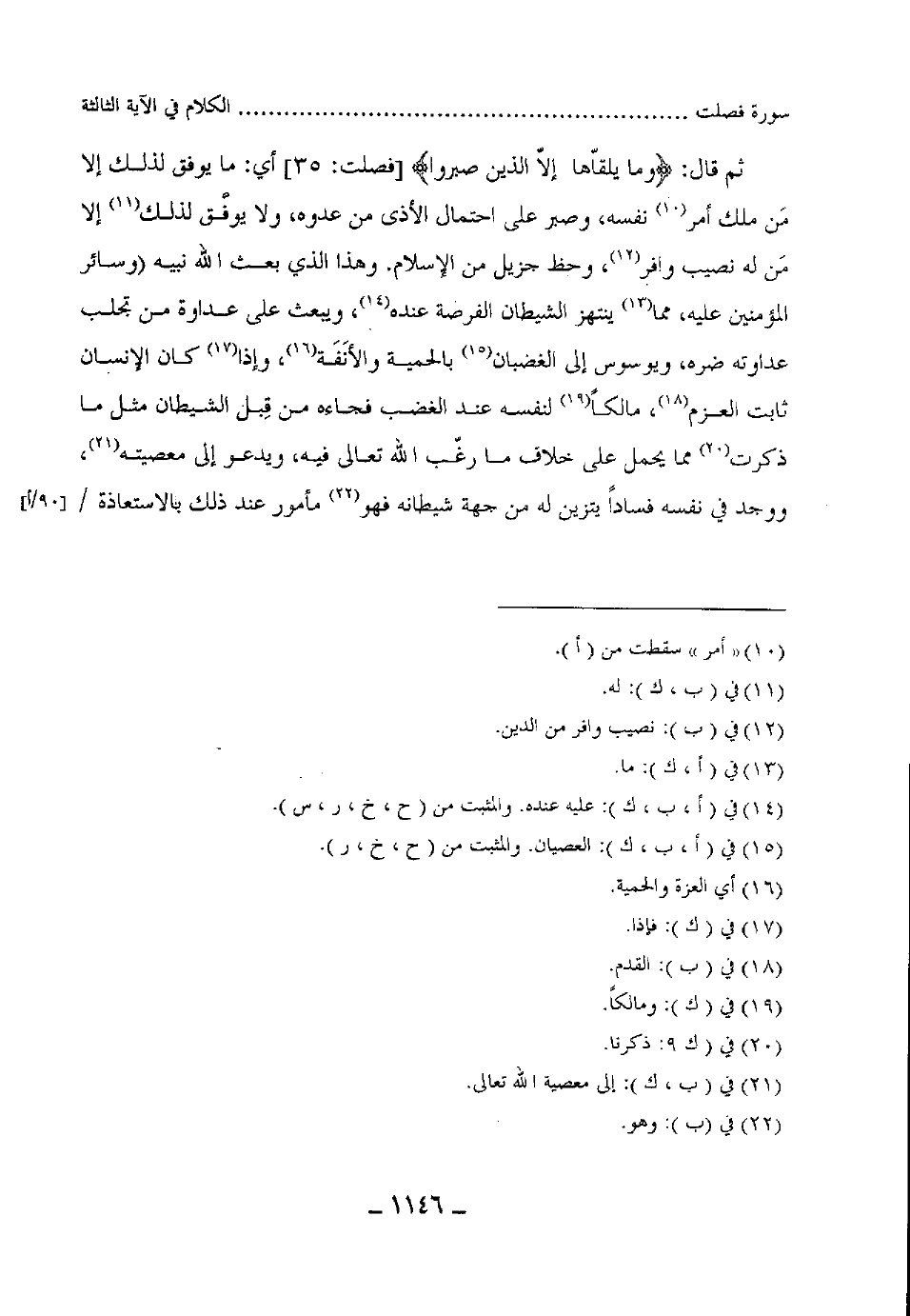 ثم قال: (وما يلقاّها إلا الذين صبروا) أي: ما يوفق لذلك إلا مَن ملك أمر نفسه، وصبر على احتمال الأذى من عدوه، ولا يوفق لذلك إلا مَن له نصيب وافر، وحظ جزيل من الإسلام. وهذا الذي بعث الله نبيه - صلى الله عليه وسلم - وسائر المؤمنين عليه ما ينتهز الشيطان الفرصة عنده، ويبعث على عداوة من تجلب عداوته ضره، ويوسوس إلى الغضبان بالحمية والأنَفَة، وإذا كان الإنسان ثابت العزم، مالكاً لنفسه عند الغضب فجاءه من قبل الشيطان مثل ما ذكرت مما يحمل على خلاف ما رغّب الله تعالى فيه، ويدعو إلى معصيته، ووجد في نفسه فسادا يتزين له من جهة شيطانه فهو مأمور عند ذلك بالاستعاذة