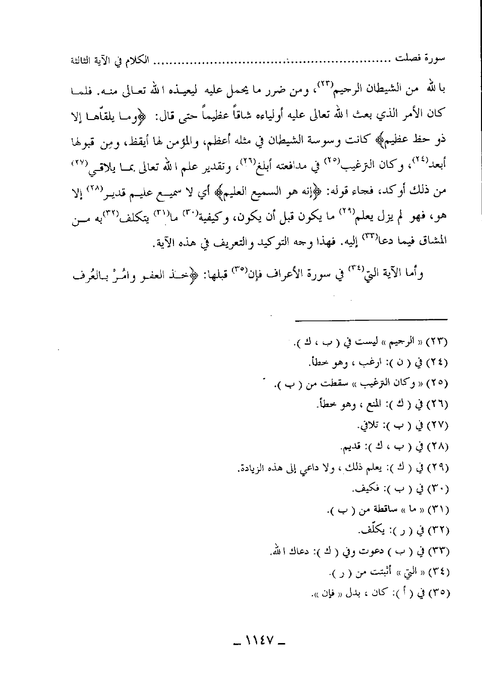 بالله من الشيطان الرجيم، ومن ضرر ما يحمل عليه ليعيذه الله تعالى منه. فلما كان الأمر الذى بعث الله تعالى عليه أولياءه شاقا عظيما حتى قال: (وما يلقاها إلا ذو حظ عظيم كانت وسوسة الشيطان فِى مثله أعظم، والمؤمن لها أيقظ، ومِن قبولها أبعد، وكان الترغيب في مدافعته أبلغ، وتقدير علم الله تعالى. بما يلاقي من ذلك أودكد فجاء قوله: (إنه هو السميع العليم) أي لا سميعا عليما قديما إلا هو، فهو لم يزل يعلم ما يكون قبل أن يكون، وكيفية ما يتكلف به من المشاق فيما دعاك إليه. فهذا وجه التوكيد والتعريف في هذه الآية.