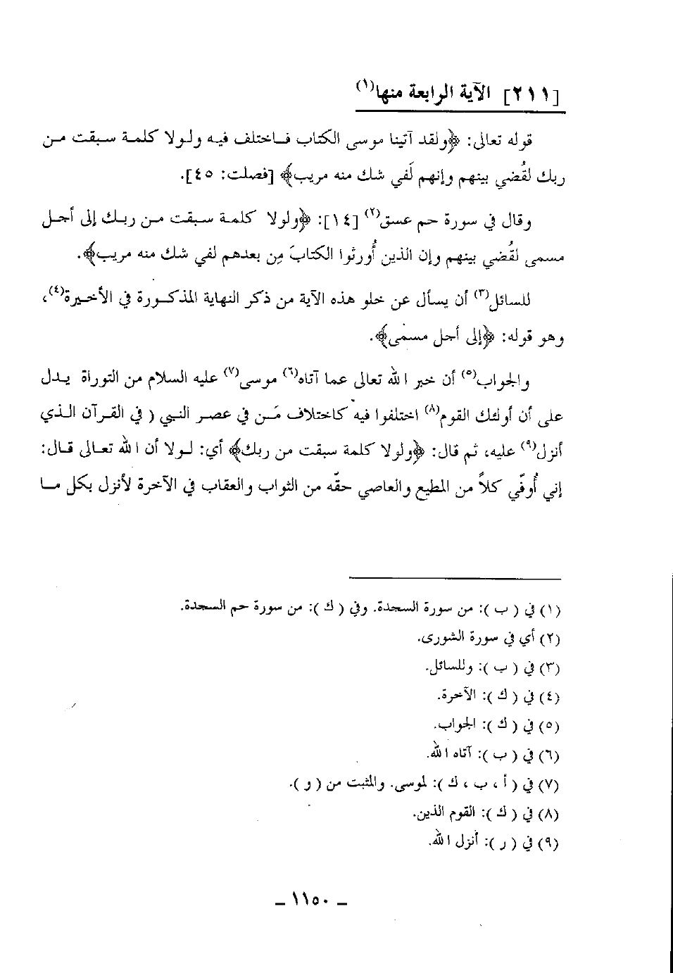 قوله تعالى: وَلَقَدْ آتَيْنَا مُوسَى الْكِتَابَ فَاخْتُلِفَ فِيهِ وَلَوْلَا كَلِمَةٌ سَبَقَتْ مِنْ رَبِّكَ لَقُضِيَ بَيْنَهُمْ وَإِنَّهُمْ لَفِي شَكٍّ مِنْهُ مُرِيبٍ (45) .