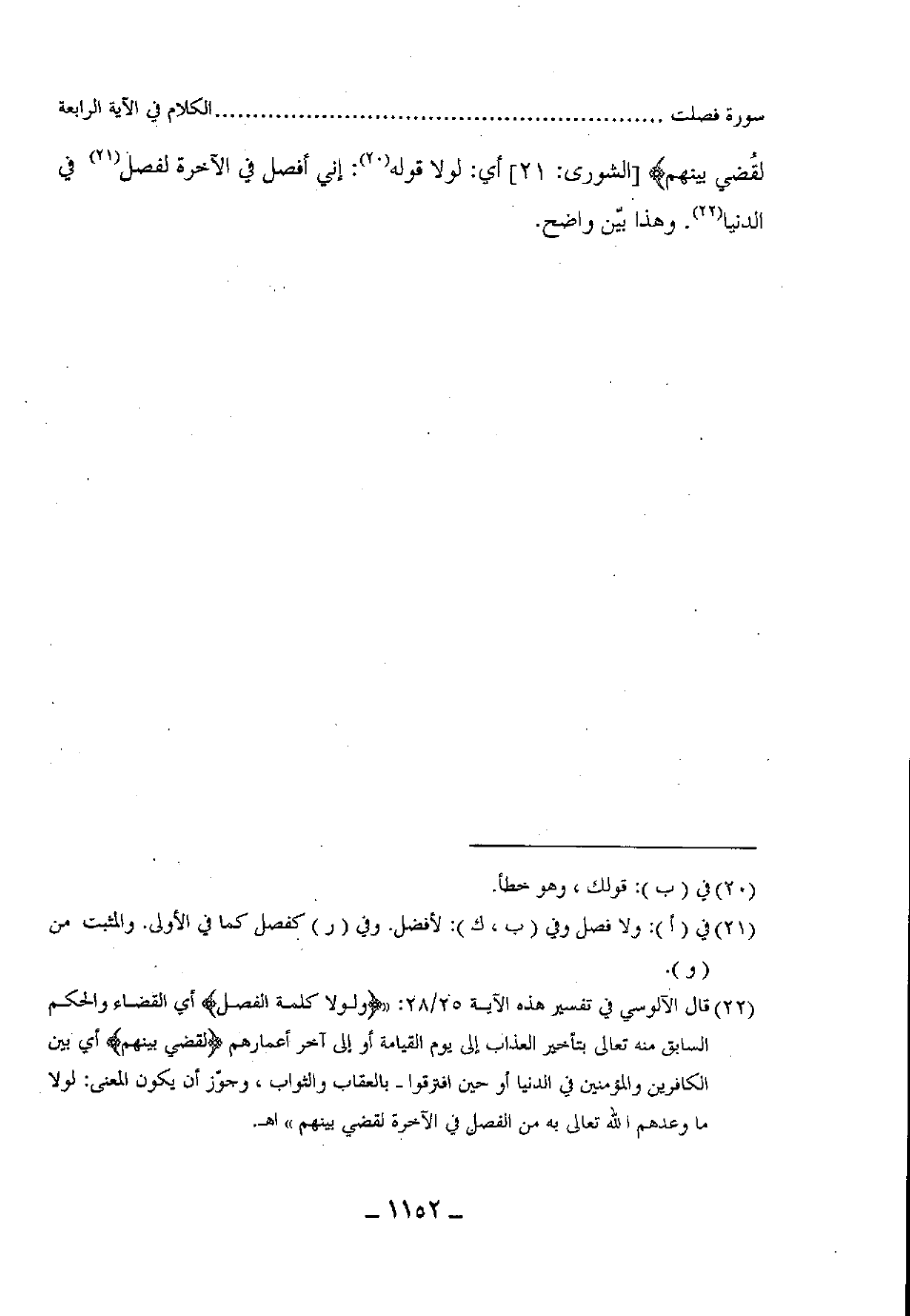أي: لولا قوله: إني أفصل في الآخرة لأفصل في الدنيا. وهذا بيّن واضح فاعرفه.