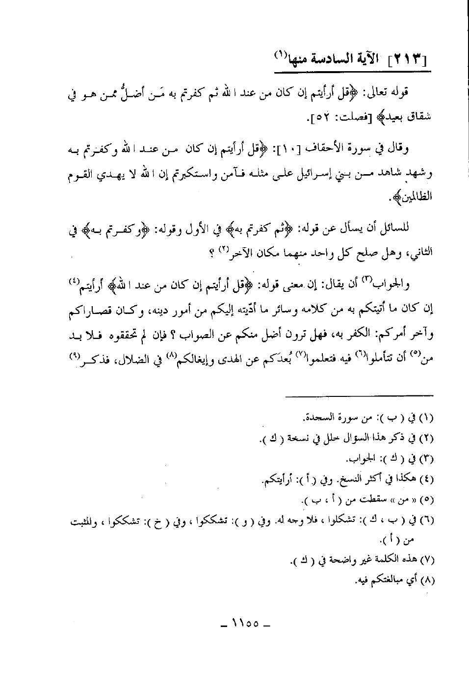 والجواب: أن يقال: إن معنى قوله: (قل أرأيتم إن كان من عند الله أرأيتم إن كان ما أتيتكم به من كلامه وسائر ما أدّيته إليكم من أمور دينه، وكان قصاراكم وآخر أمركم: الكفر به، فهل ترون أضل منكم عن الصواب؟ فإن لم تحققوه فلا بد من أن تتأملوا فيه فتعلموا بعدَكم عن الهدى وإيغالكم في الضلال، فذكر