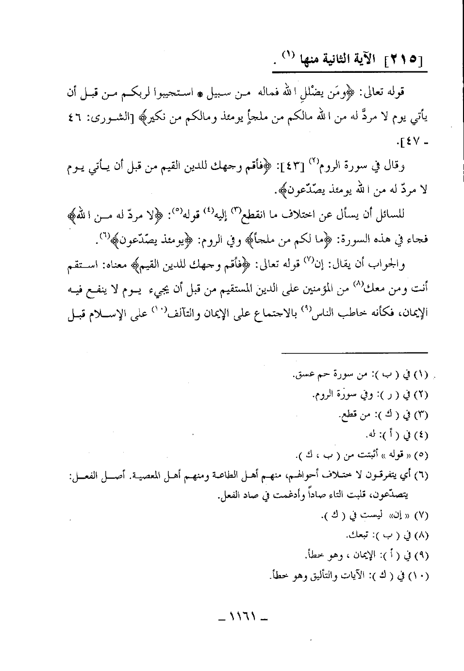والجواب أن يقال: إن قوله تعالى: (فأقم وجهك للدين القيم) معناه: استقم أنت ومن معك من المؤمنين على الدين المستقيم من قبل أن مجيء يوم لا ينفع فيه الإيمان فكأنه خاطب الناس بالاجتماع على الإيمان والتآلف على الإسلام قبل
