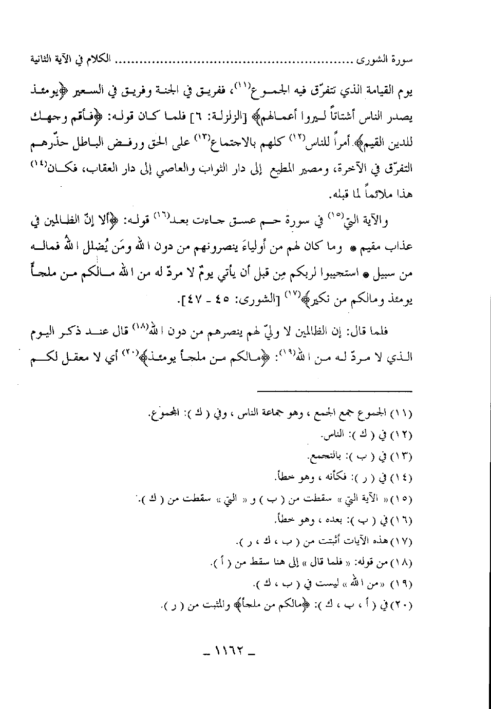 والآية التي في سورة حم عسق جاءت بعد قوله: (أَلَا إِنَّ الظَّالِمِينَ فِي عَذَابٍ مُقِيمٍ (45) وَمَا كَانَ لَهُمْ مِنْ أَوْلِيَاءَ يَنْصُرُونَهُمْ مِنْ دُونِ اللَّهِ وَمَنْ يُضْلِلِ اللَّهُ فَمَا لَهُ مِنْ سَبِيلٍ (46) اسْتَجِيبُوا لِرَبِّكُمْ مِنْ قَبْلِ أَنْ يَأْتِيَ يَوْمٌ لَا مَرَدَّ لَهُ مِنَ اللَّهِ مَا لَكُمْ مِنْ مَلْجَإٍ يَوْمَئِذٍ وَمَا لَكُمْ مِنْ نَكِيرٍ (47) .