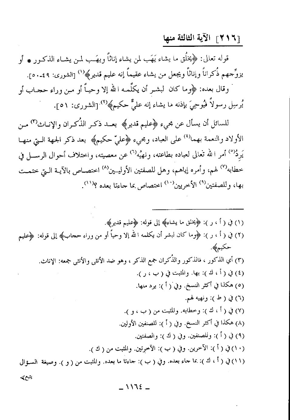 قوله تعالى: (يَخْلُقُ مَا يَشَاءُ يَهَبُ لِمَنْ يَشَاءُ إِنَاثًا وَيَهَبُ لِمَنْ يَشَاءُ الذُّكُورَ (49) أَوْ يُزَوِّجُهُمْ ذُكْرَانًا وَإِنَاثًا وَيَجْعَلُ مَنْ يَشَاءُ عَقِيمًا إِنَّهُ عَلِيمٌ قَدِيرٌ (50) . وقال بعده (وَمَا كَانَ لِبَشَرٍ أَنْ يُكَلِّمَهُ اللَّهُ إِلَّا وَحْيًا أَوْ مِنْ وَرَاءِ حِجَابٍ أَوْ يُرْسِلَ رَسُولًا فَيُوحِيَ بِإِذْنِهِ مَا يَشَاءُ إِنَّهُ عَلِيٌّ حَكِيمٌ (51) .