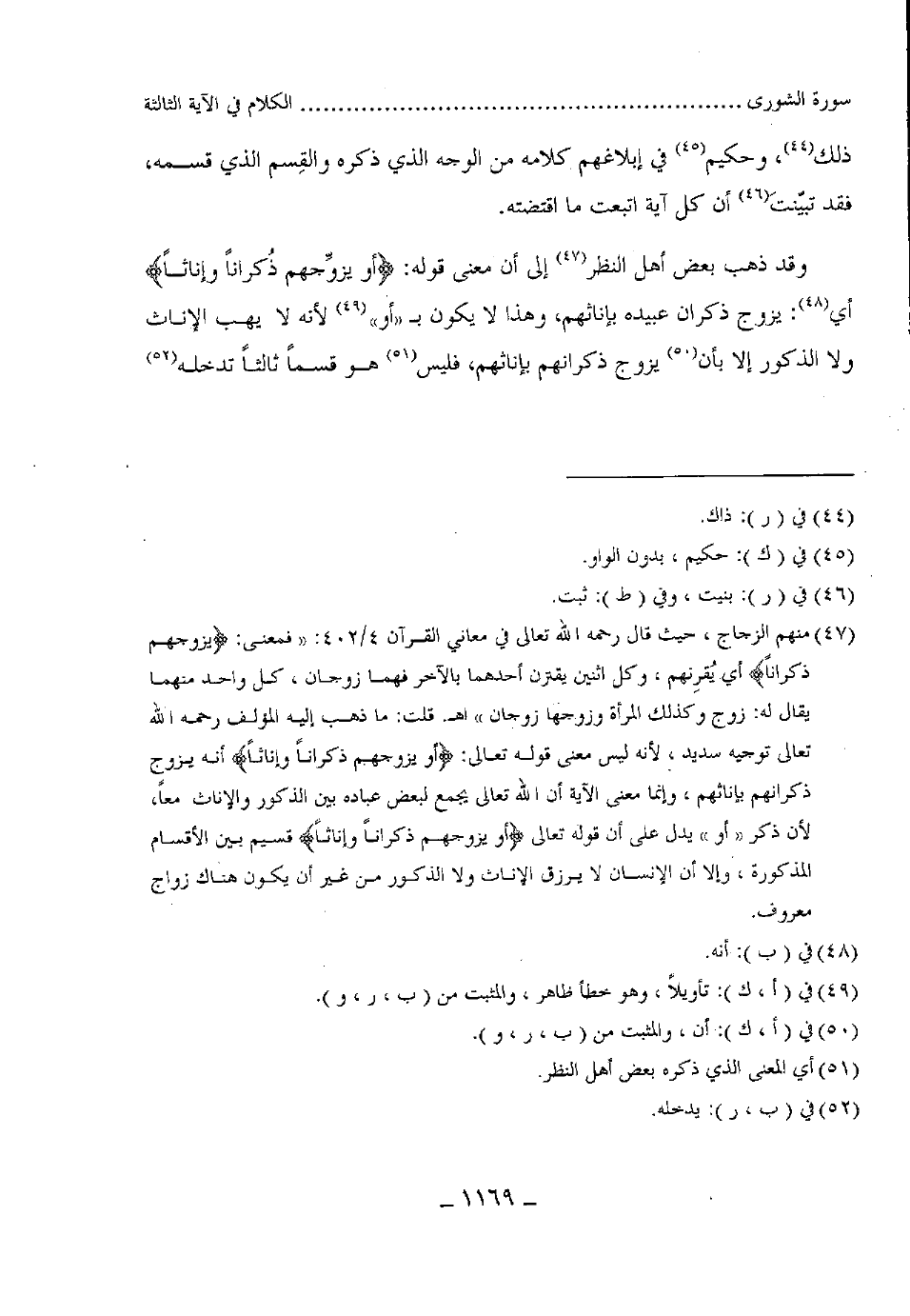وقد ذهب بعض أهل النظر إلى أن معنى قوله: (أو يزوجهم ذُكراناً وإناثا) : أن يزوج ذكران عبيده بإناثهم، وهذا لا يكون ب (أو) لأنه لا يهب الإناث ولا الذكور إلا أن يزوج ذكرانهم بإناثهم، فليس هو قسما ثالثا تدخله